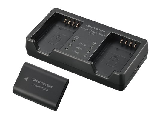 大容量2,280mAhのリチウムイオン充電池「BLX-1」1個と、リチウムイオン充電器「BCX-1」のセットです。