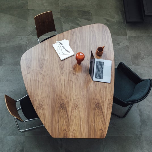 TECTA M21 DINING TABLEジャン・プルーヴェがTECTA社のためにデザインした天板を元に、彼の没後に土台部分を追加して発表したテーブル。天板の一辺は直線だが、残る三辺はそれぞれに異なる曲線を描く。この不定形なラインで座る人数を限定しない形状は、微妙な視線のズレでさまざまなシーンに対応し、心地よい距離感をもたらしてくれます。