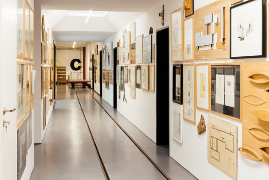 本社の回廊には、バウハウス当時のモノも含んだ貴重な資料がアートのように飾られている