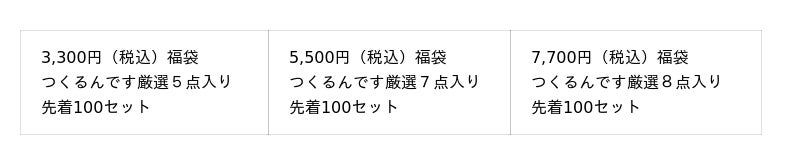 【オンライン限定!つくるんです厳選福袋/3種類】