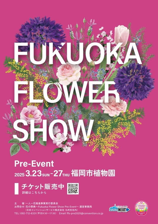 ■「Fukuoka Flower Show Pre-Event」について 福岡市では、花をテーマとしたMICEとして、ガーデン文化の定着による市民生活の質の向上、観光・MICEの推進、社交・ビジネスの場づくりなどの実現を目指し、2026年春に「Fukuoka Flower Show」の開催にチャレンジします。2025年3月23日(日)~27日(木)はそのプレ大会を開催。見て・触れて・香って、多彩なコンテンツを五感で楽しむ特別な5日間です。