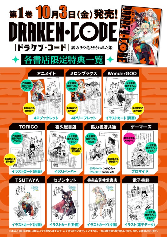 『DRAKEN・CODE 訳ありの竜と呪われた姫』コミックス1巻の発売を記念して、大北真潤先生&新谷かおる先生お二人のサインが入ったWサイン本が当たるXでのプレゼントキャンペーンが決定いたしました。超貴重なこの機会をお見逃しなく!