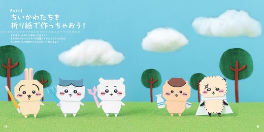ちいかわ、ハチワレ、うさぎ、くりまんじゅう、ラッコ…ちいかわのキャラクターや、キャラクターたちのお気に入りアイテムの折り方を分かりやすく紹介しています。