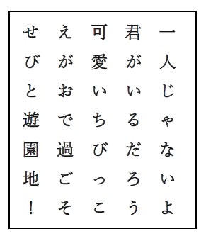 私はどうしてももう一つのメッセージが気になったんだ。でも、どこから読んでもまるで意味をなさない。『ようこそ!』は分かるのに…? ふと、漢字を平がなに変換してみた。そして、一番上の文字を横読みしてみる。「ひき…かえ…?」いや、まさかね。不穏なメッセージだから分かりにくくしてあるとか、考え過ぎだよね?