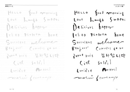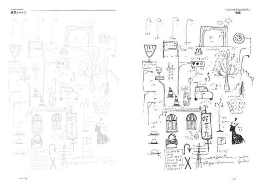 gamiさんのような絵や文字を書けるようになるための練習スペースも設けました。gami絵は、ぬり絵としても楽しめます。練習しているうちに、自分流の絵や文字も書けるようになるでしょう。それこそが「らくがきリメイク」の醍醐味です。