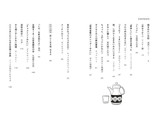 過去のある日、あの人と食べたもの、酌み交わしたお酒が、その後も時折思い出してしまう恋しい味へと変わっていく。本作は、そんな思い出ごと味わえる一品について、過去を回想しながら綴ったエッセイです。