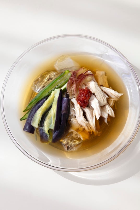 オクラ、なす、鶏胸肉のさっぱり梅スープ