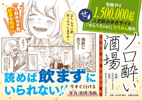 【月間PV1500000超の飲み歩きサイト「せんべろnet」ひろみん原作!『ソロ酔い酒場 今日も寄り道ひとり飲み 1』待望のコミックス8/1(金)発売