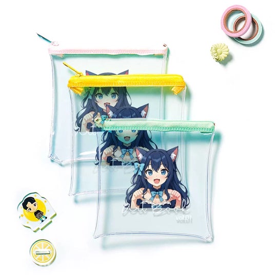 本商品は、PVC素材を使用した透明タイプのポーチで、防水性と耐久性に優れています。ファスナー部分にだけカラーを配したシンプルながらもおしゃれなデザインが特徴。フルカラー印刷に対応しており、キャラクターやブランドロゴ、チームエンブレムなども高精細に再現可能です。