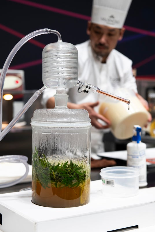 レモンマリーゴールドを蒸留した香りで審査員にアピール (C)Christophe Pouget Coupe du Monde de la Patisserie 2025