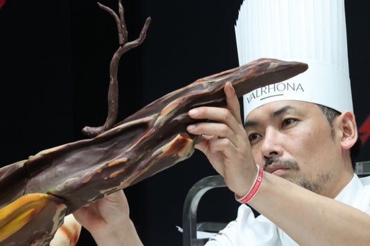 籏は、日本代表のチームリーダーとして、チョコレート細工とレストランデザートを担当。