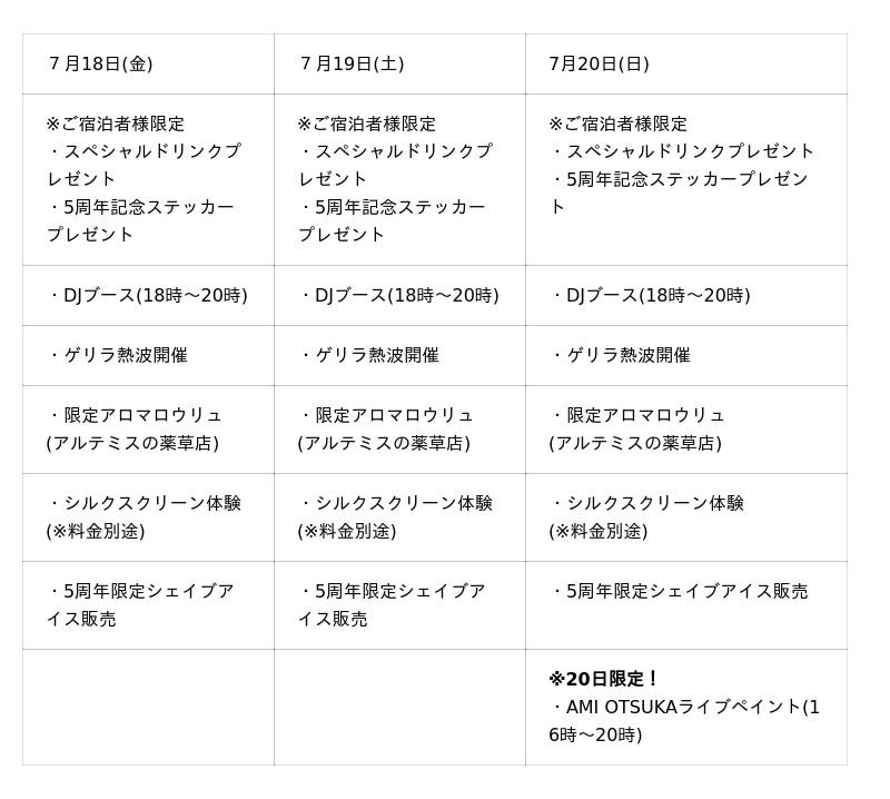 8HOTEL CHIGASAKI 5周年!宿泊者限定7月18・19・20日 スペシャルイベント開催