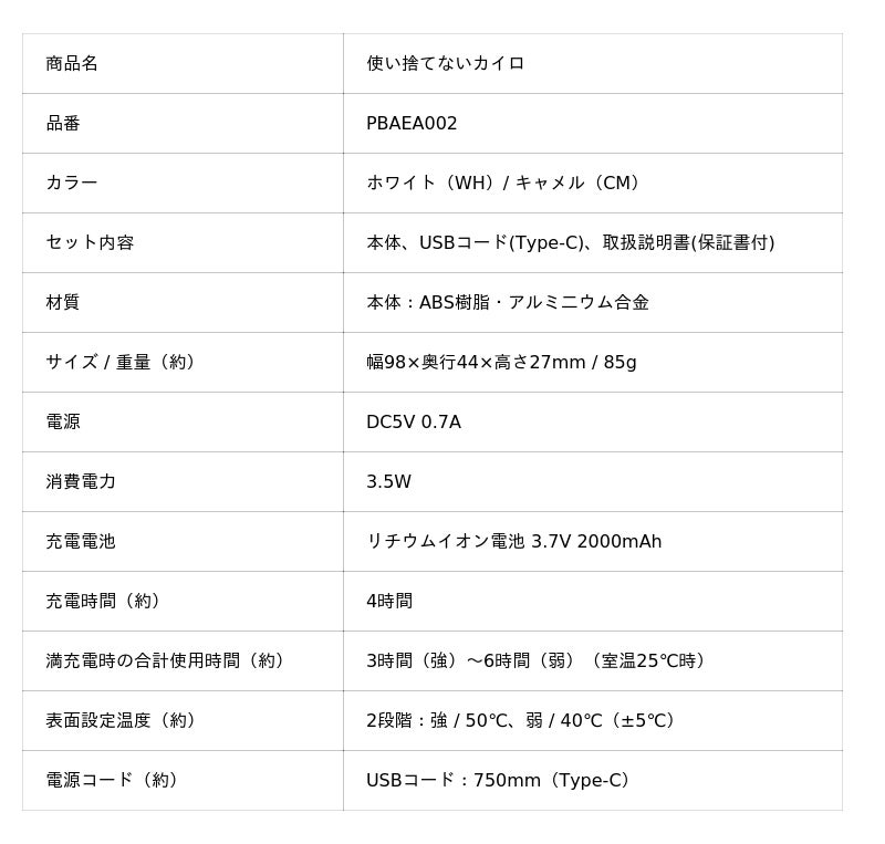 「使い捨てないカイロ」PBAEA002