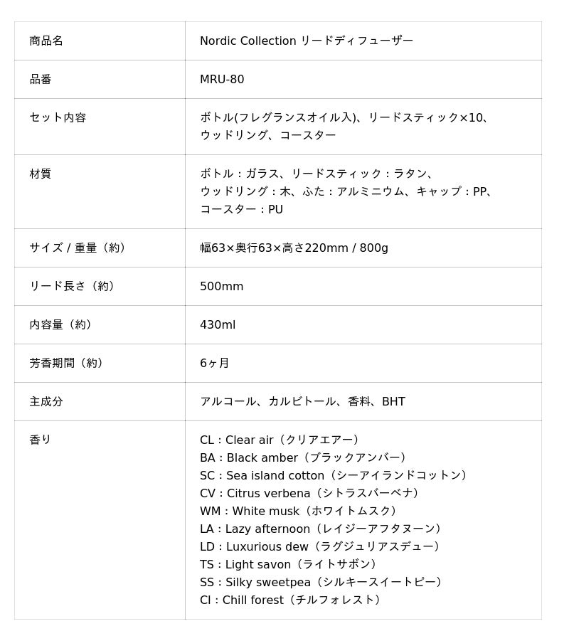 「Nordic Collection リードディフューザー」 MRU-80