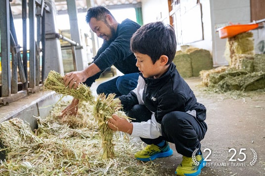 伊賀の里モクモク手づくりファーム(三重県伊賀市)農業、畜産、宿泊など、家族で楽しめる農業テーマパーク。早朝の乳牛お世話体験から1杯の牛乳ができる過程の学びや、ウインナーづくり体験などの食育体験が評価された。8棟あるキッズコテージにも、持続可能性を学べる工夫がたくさん。