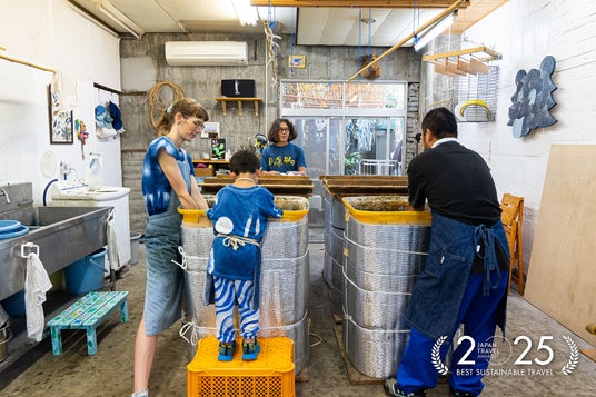 AiAii(兵庫県洲本市)日本人とイギリス人の夫婦が経営する天然藍染め工房。古くなった洋服を持ち込み、自分好みに藍色に染めるなど、アップサイクルの実践も可能。藍農園の運営など、持続可能性に対する取り組みや、子どもや障害のある人も楽しめるような設計が評価された。