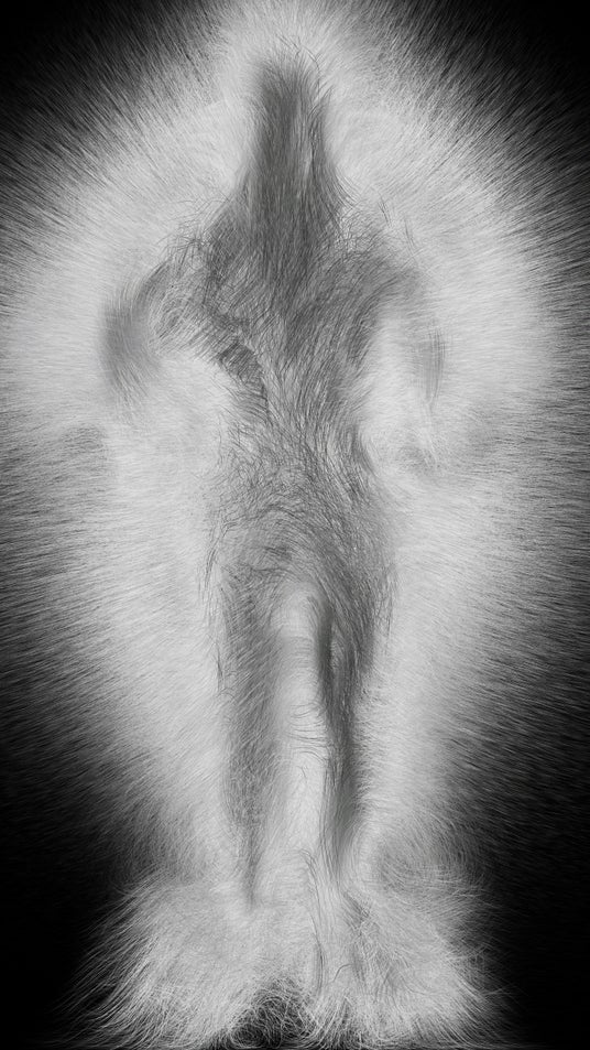 高さ8mの巨大な空間に、人が生きている限り世界に与え続けるエネルギーで、人物の存在を描いている作品《Dissipative Figures - Human, Light in Dark》と、鳥の群れが世界に与えたエネルギーで、鳥の群れの存在を描いている作品《Dissipative Figures - 1000 Birds, Light in Dark》が展示されています。