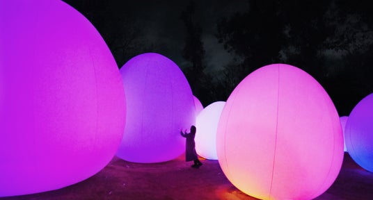 大阪市の長居植物園に常設しているチームラボによる夜の野外ミュージアム「チームラボ ボタニカルガーデン 大阪」では、2025年2月22日(土)から、ユーカリの広場に密集して立ち続ける光のovoid(卵形体)の作品《自立しつつも呼応する生命の森 - ユーカリ》をリニューアルしました。今回のリニューアルで、それぞれ自律している光のovoidが人にかき分けられたり、風に吹かれたりして倒れると、立ち上がりながら光の色を変え、色特有の音色を響かせる作品体験が、更に拡張しました。