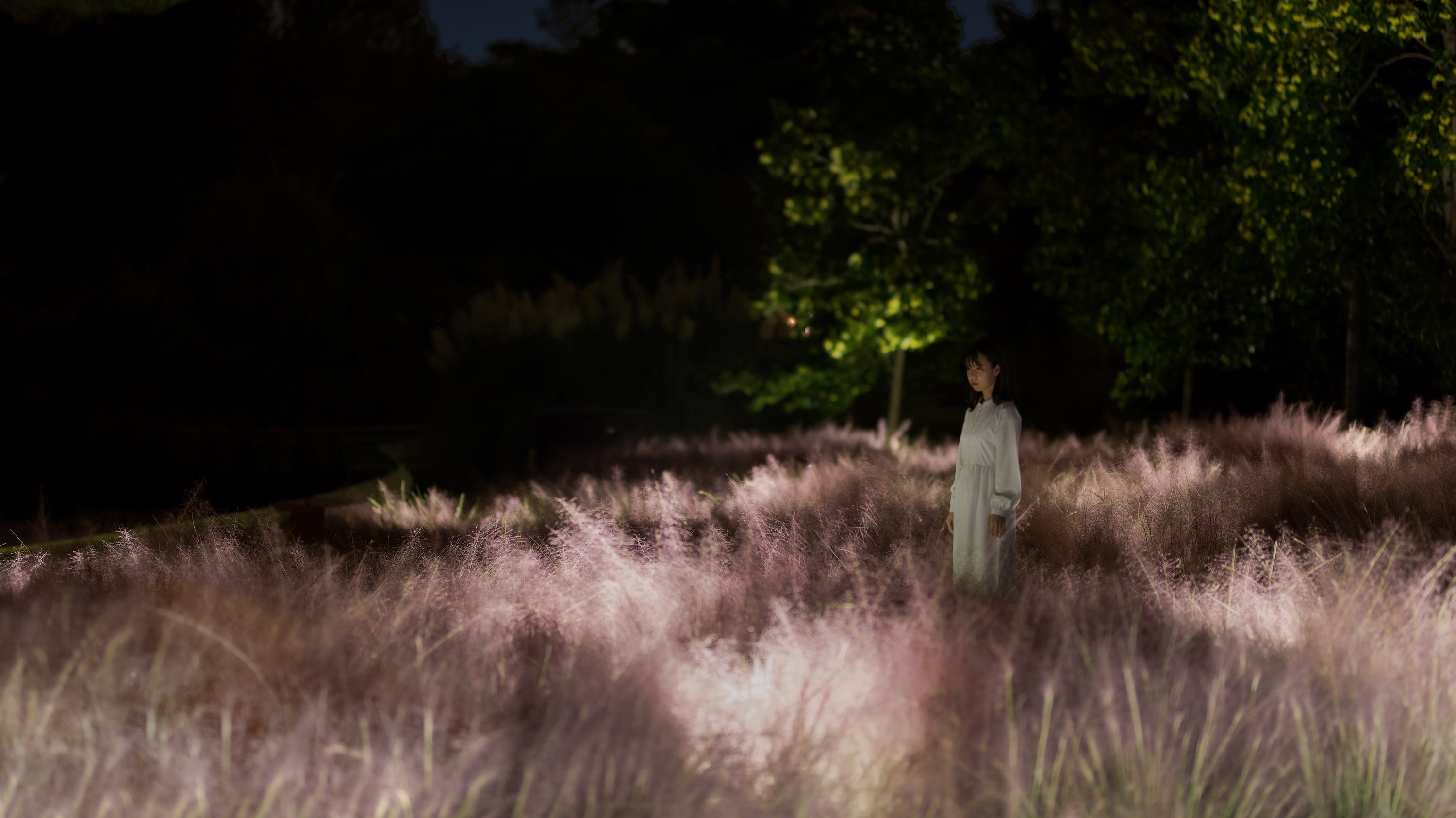 また、コスモスが光り輝き、音色を響かせる作品《生命は闇に浮かぶまたたく光 - コスモス》は11月23日(日)まで公開予定です。カピラリスが光り輝き、音色を響かせる作品《光色の草原 - カピラリス》では、ピンクに色づくカピラリスの景色をご覧いただけます。