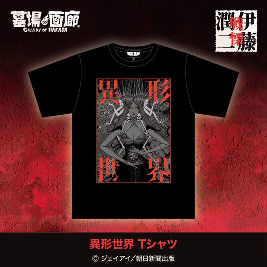日本を代表するホラー漫画界の巨匠・伊藤潤二の唯一無二の世界をまとめあげた画集「異形世界」のカバーイラストを大胆にTシャツ化!