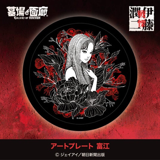 一見すると美しく絵付けされた富江の背景に、うごめく赤い肉塊の姿が艶かしく輝くアートプレートが登場!