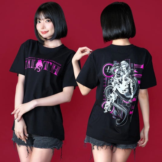 カディシュトゥのリーダー・リリスがTシャツに登場!フロントには蛇をモチーフにしたロゴ、背面にはその美しさが際立つ女魔・リリスの姿をビッグプリントでデザイン!