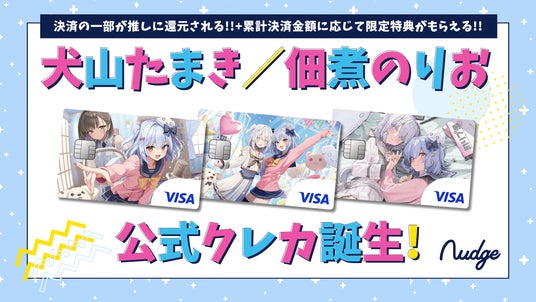 ナッジ株式会社(本社:東京都千代田区、代表取締役:沖田 貴史)は、女性漫画家・佃煮のりおがプロデュースするバーチャルYouTuber事務所「のりプロ」と提携し、本日より、人気VTuber「犬山たまき」およびそのプロデューサーであり漫画家・佃煮のりお氏とコラボレーションした「犬山たまき/佃煮のりお公式クレジットカード」の提供を開始しました。