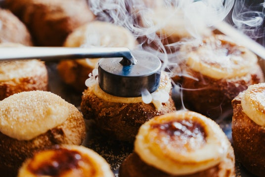 シュー生地の中に入っているカスタードクリームにカソナードという砂糖をかけ、焼きごてで焼き色をつけたスイーツです。焦がした砂糖の香ばしさとカスタードの濃厚な甘さが対照的に作用し、シュー生地の風味・カスタードの濃厚な味わい・キャラメルの苦味が調和した新体験のシュークリームです。