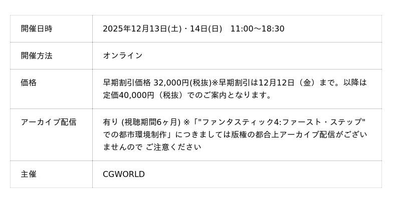 株式会社ボーンデジタル(本社:東京都千代田区、CEO:新和也、URL:https://www.borndigital.co.jp/)は2025年12月13日(土)・14日(日)に、世界の一流スタジオで活躍するCGアーティストによるスキルアップイベント『Premier Insights Vol.2』を開催することを発表しました。