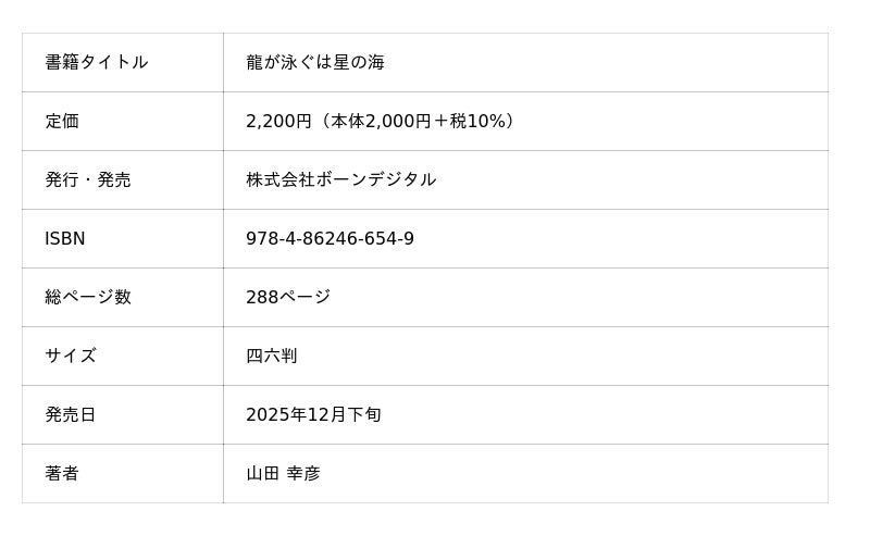 株式会社ボーンデジタル(本社:東京都千代田区、CEO:新 和也、URL:https://www.borndigital.co.jp)は、『龍が泳ぐは星の海』(著:山田 幸彦)を2025年12月下旬に発売いたします。