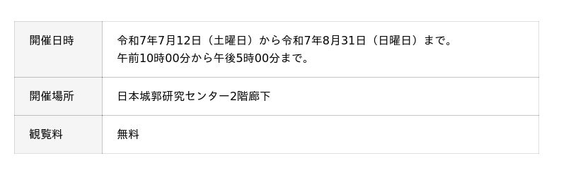 令和7年7月26日(土曜日)、8月17日(日曜日)各回午前10時30分から午前11時00分、午後2時30分から午後3時00分