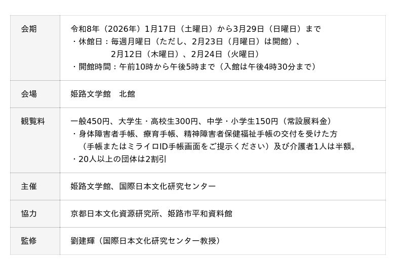 日時 令和8年(2026年)2月21日(土曜日)午後1時30分から午後3時出演 劉建輝(国際日本文化研究センター教授、本展監修者)