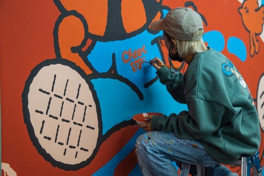 さまざまな媒体のアートワークを手掛けるイラストレーター。自分自身がその場所に訪れ人々との交流を経て全身を使って描くことでしか完成しない、という壁画の特徴から、その土地の風土や集まる人々に焦点をあてたキャラクターや世界をモチーフに、日常からほんの少し元気が湧くような作品を模索。
