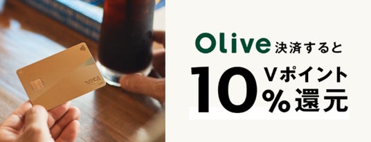 併設のスターバックスやSHARE LOUNGEのご利用料金をOliveフレキシブルペイ(クレジットモード/デビットモード)でスマホタッチ決済していただくと、ご利用金額の10%相当のVポイントを還元いたします。