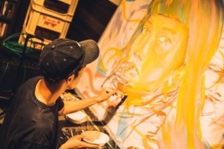 関西を中心にライブペイント、作品展示など精力的に活動するイラストレーター。女性をモチーフとし、カラフルに散りばめた色は日常の音を表現している。