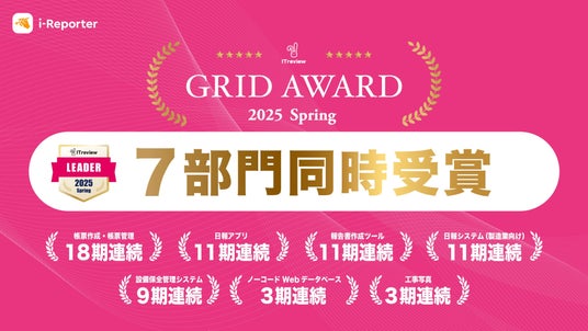 株式会社シムトップス(本社:東京都品川区、代表取締役社長:水野貴司)が開発・販売する現場帳票システム「i-Reporter(アイレポーター)」は、国内最大級のIT製品レビューサイト「ITreview」が主催する「ITreview Grid Award 2025 Spring」において、7部門で「Leader」を同時受賞いたしました。