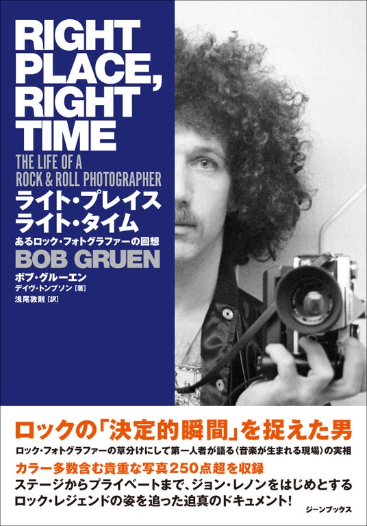 ジョン・レノン、ボブ・ディラン、ミック・ジャガー、エルトン・ジョン、セックス・ピストルズ、キッス…伝説的ミュージシャンたちとともに1960年代から半世紀以上を歩んできたロックフォトグラファー、ボブ・グルーエン初の回想録『ライト・プレイス ライト・タイム あるロック・フォトグラファーの回想』が遂に日本上陸。