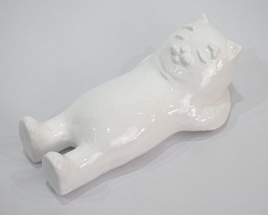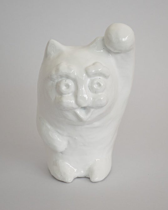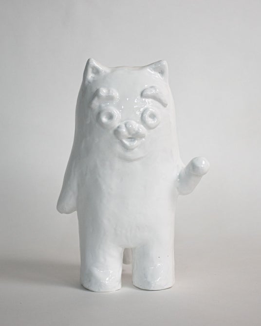 招き猫発祥の地のひとつとされる東京・大谿山 豪徳寺から着想したインスタレーションにより、白一色の招き猫の立体群と平面作品の約20点を展示。