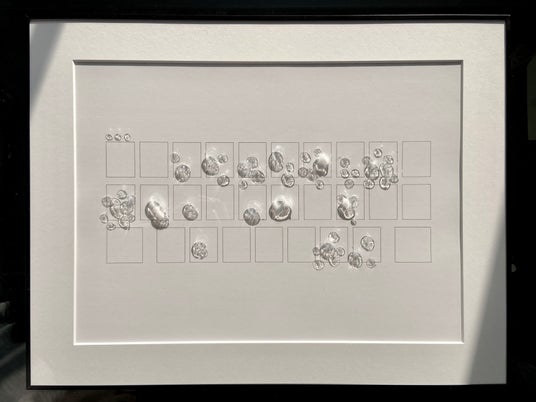 本展は、版画と書という異なる表現を通して、目に見えない時間や行為の層を見つめる試みです。版画は工程の蓄積によって時間の重なりを定着させ、書は身体的行為によって痕跡を刻みます。両者はそれぞれに「積み重ね」と「瞬間」を内包しながら、不可視の痕跡を画面上に立ち上げます。
