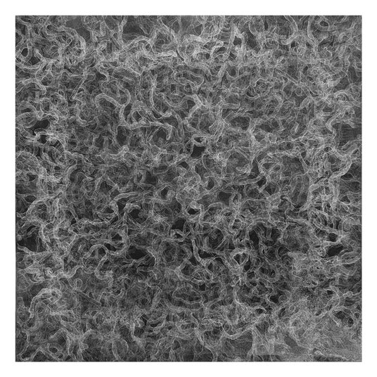 植田と田中の実践は、扱う素材も制作の起点も大きく異なります。しかし両者が向き合っているのは、時間と身体、思考がどのように痕跡として定着するのかという共通の問いです。植田は、自身の脳神経回路をモチーフに、思考や記憶が結び直され、循環し、再編成される過程を版画の工程によって重層的に構築します。版を重ねる行為は、時間を蓄積し、圧縮し、構造として画面に固定するプロセスでもあります。彼の作品において、時間は厚みを持った層として現れます。