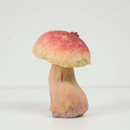 かか/1995年生まれ。女子美術大学大学院研究科美術専攻立体芸術修了。平安時代の木像技法「一木(いちぼく)造り」、檜や岩絵具といった伝統的な素材を使い、きのこや架空のキャラクターをモチーフにした木彫作品を制作。ポップな印象のなかに複雑な深みがある作風が特徴。