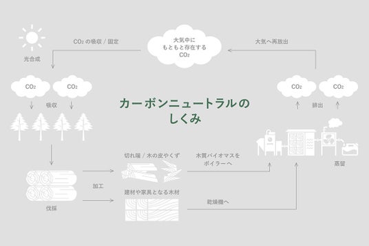 しかし、本プロジェクトでの蒸留法については製材所で発生する端材や皮などを燃料として使用することで、一般的な製造方法に比べ環境への負荷が大きく低減されています。
