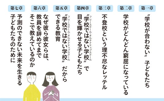 本書では均一化ではなく、子どもの個性を伸ばす多様化、ほんとうの意味での生きる力を伸ばすことの重要性に気づき、それを実践する学校と保護者、そして子どもたちの姿をあますところなく取材しました。