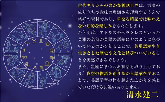 本書はギリシャ神話や星座の物語を通して、単なる暗記では味わえない知的な英語学習を楽しめる一冊です。