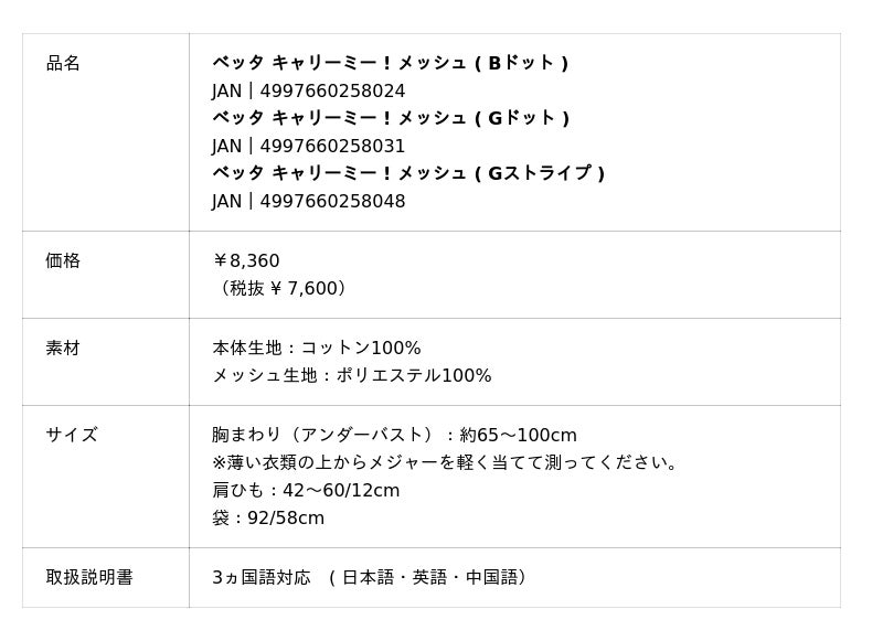 Betta| 【 9/8発売 】 ベッタ キャリーミー!メッシュ / 新色 シンプルカラーのドットとストライプが登場