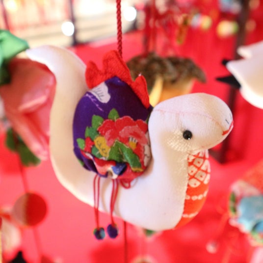フクロウ(不苦労)や、鯛(めでタイ)、猿(厄が去る)など、ひとつひとつに願い事や意味があり、今年は干支の巳も登場。蛇は脱皮し成長を続けることから、挑戦や変化を象徴していると言われます。