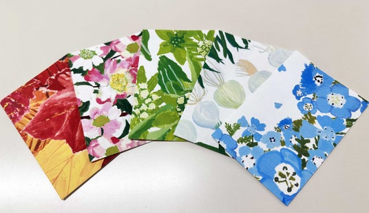 また、郵便局限定で牛乳パックを再利用した紙を使用した手作りの絵はがきをセットにして販売いたします。絵はがきのラインナップは全8種類。「福来みかんハンドクリーム」「偕楽園の梅ハンドクリーム」は香りだけでなく絵はがきの種類もお好みでお選びいただけます。