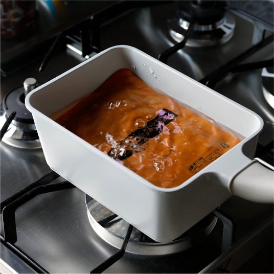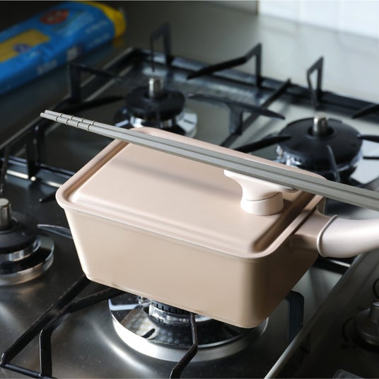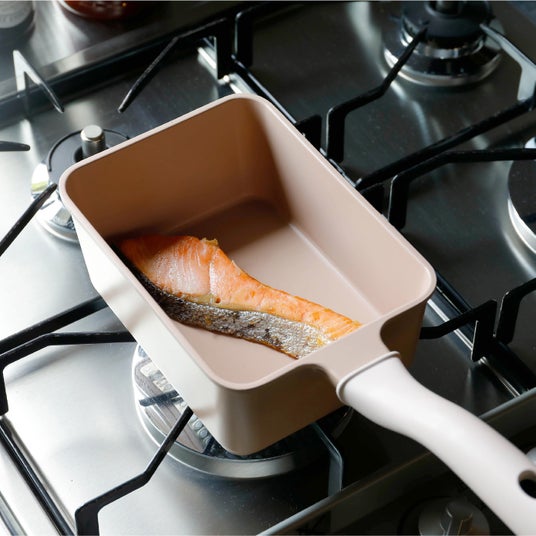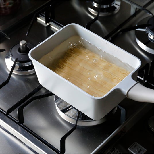 食材にぴったりサイズのフライパンを使えば、水の量も余分に入れなくてすむので、その分沸騰するのも早く『節水・時短調理』に繋がります。四角いのでコンロに置いたときにも場所を取りません。