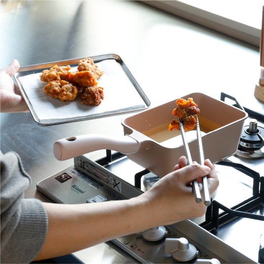 色々な食材にピッタリサイズな四角い深型フライパン。
