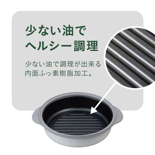 フタ付きなので油跳ねもなく、調理をレンジグリルだけで完結出来るので、コンロや魚焼きグリルを汚さず掃除の手間も掛かりません。